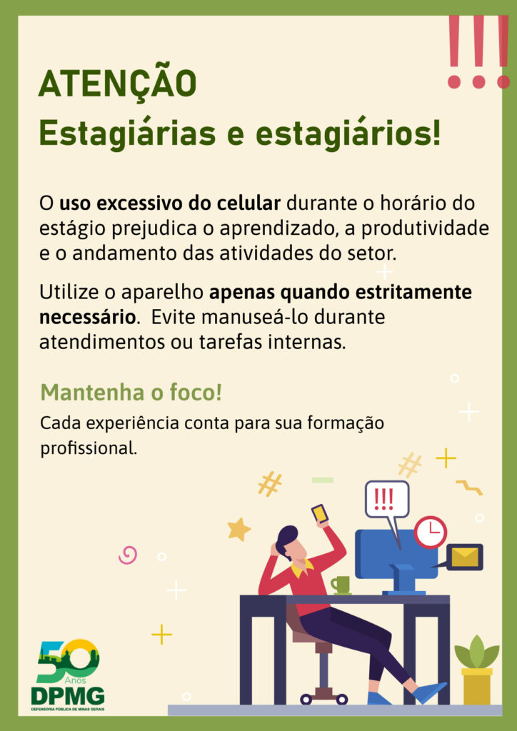 Diretoria de Estágio, Residência e Serviço Voluntário alerta estagiárias e estagiários sobre uso excessivo do celular durante o horário do estágio