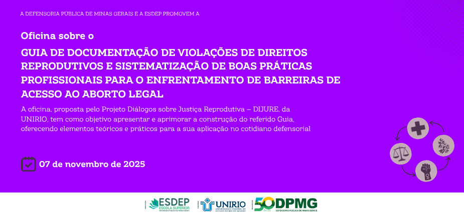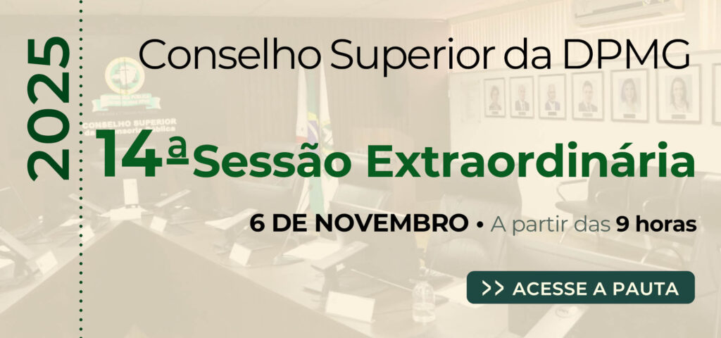 Resultado 13/11/2025 DPMG completa um ano de implantação do SOLAR A Defensoria Pública de Minas Gerais (DPMG) completou um ano de implantação do SOLAR em suas Unidades, alcançando os seguintes resultados:... Leia Mais 13/11/2025 Defensoria mineira lança nova versão do APP DPMG com melhorias e novas funcionalidades voltadas para o público interno Com design renovado e navegação mais intuitiva, a nova versão do aplicativo da DPMG oferece novos recursos e funções... Leia Mais 12/11/2025 Escritório de Processos O Escritório de Processos trabalha para entender, analisar e transformar os fluxos de trabalho da DPMG, a fim de... Leia Mais 07/11/2025 Atuação da Defensoria Pública em favor da Pop Rua, no mês de outubro A Defensoria Pública de Minas Gerais (DPMG) apresenta o informativo das ações realizadas no mês de outubro pela Defensoria Especializada... Leia Mais 04/11/2025 PJe: duplo fator de autenticação para usuários externos, a partir de 3/11 A partir do dia 3 de novembro de 2025, usuários externos – defensores(as) públicos(as), advogados(as), partes e demais interessados... Leia Mais 04/11/2025 Escola Superior recebe oficina sobre Guia de documentação de violações de direitos reprodutivos e boas práticas defensoriais A Escola Superior da Defensoria Pública de Minas Gerais (Esdep-MG) sedia, no dia 7 de novembro de 2025, das... Leia Mais 04/11/2025 Conselho Superior divulga pauta da 14ª sessão extraordinária No dia 6 de novembro (quinta-feira), a partir das 9 horas, será realizada a 14ª sessão extraordinária de 2025... Leia Mais 04/11/2025 Conselho Superior divulga pauta da 15ª sessão extraordinária No dia 7 de novembro (sexta-feira), a partir das 9 horas, será realizada a 15ª sessão extraordinária de 2025 do... Leia Mais 03/11/2025 CNJ promove Mutirão de Julgamento e Impulsionamento de Processos com Ênfase na Temática Racial Processos serão indicados pelos tribunais participantes. Defensoras e defensores deverão requerer ao Juízo inclusões de feito A Câmara de... Leia Mais 03/11/2025 2ª Pesquisa sobre percepção e avaliação do Poder Judiciário Brasileiro O Conselho Nacional de Justiça (CNJ) está realizando segunda pesquisa para um dos indicadores de desempenho do Macrodesafio “Fortalecimento da... Leia Mais 1…101112…113