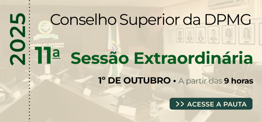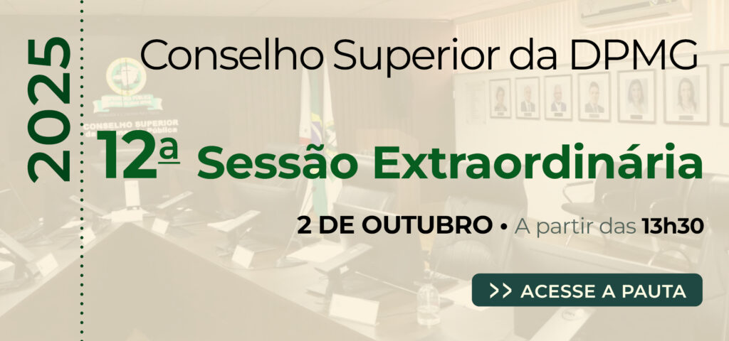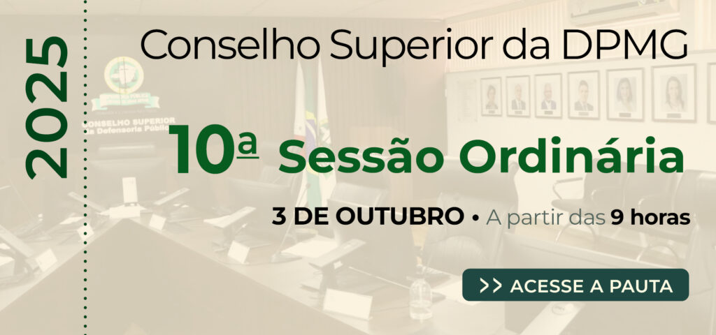 Resultado 03/10/2025 Servidores da DPMG participam de capacitação sobre a Nova Lei de Licitações e Contratos Administrativos Como parte das ações de capacitação previstas no Plano de Ação para o tratamento dos riscos identificados no Gerenciamento... Leia Mais 02/10/2025 Defensoria Pública de Minas recebe ministro Sebastião Reis Júnior, do STJ O ministro do Superior Tribunal de Justiça (STJ), Sebastião Reis Júnior, visitou a Unidade I da Defensoria Pública de... Leia Mais 02/10/2025 Comissão do PLS participa de iniciativas para fortalecer sustentabilidade em Minas A Defensoria Pública de Minas Gerais (DPMG), participou do evento de encerramento da série “Minas rumo à COP30”, realizado no... Leia Mais 30/09/2025 Defensoria-Geral divulga edital de remoção voluntária. Clique aqui para ler a Resolução n° 4007/2025 Assista ao tutorial. 29/09/2025 Defensoria Pública forma o primeiro grupo de brigadistas da Instituição A Defensoria Pública de Minas Gerais realizou, nesta segunda-feira (29/9), a formatura do 1º grupo de brigadistas da DPMG.... Leia Mais 29/09/2025 Conselho Superior divulga pauta da 11ª Sessão Extraordinária de 2025 No dia 1º de outubro (quarta-feira), a partir das 9 horas, as membras e membros do Conselho Superior da Defensoria... Leia Mais 29/09/2025 Conselho Superior divulga pauta da 12ª Sessão Extraordinária de 2025 No dia 2 de outubro (quinta-feira), a partir das 13h30, as membras e membros do Conselho Superior da Defensoria Pública do... Leia Mais 29/09/2025 Conselho Superior divulga pauta da 10ª Sessão Ordinária de 2025 No dia 3 de outubro (sexta-feira), a partir das 9 horas, as membras e membros do Conselho Superior da Defensoria Pública... Leia Mais 29/09/2025 Defensoria Pública de Minas Gerais promove palestra sobre metodologia APAC em curso de formação de novos defensores A Defensoria Pública de Minas Gerais, por meio da sua Escola Superior (Esdep), promoveu na última sexta-feira (26/9), no... Leia Mais 25/09/2025 DPMG implanta novos canais para solicitar serviços de suporte do Sistema SEI Conforme a Resolução 3985/2025, a partir de 01/10/2025, para solicitar suporte técnico de dúvidas na utilização do Sistema, reporte de... Leia Mais 1…141516…113