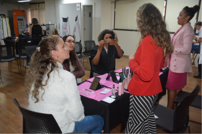 Maiara Alves Faria, que atua no setor de Transportes, participou do evento e teve a oportunidade de fazer um breve curso de maquiagem, massagem e cortar o cabelo. “Estou participando desde ontem. Estou adorando tudo”, afirmou a colaboradora.