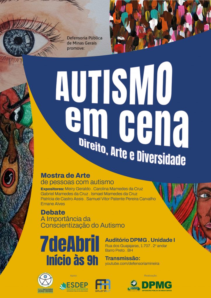 Para marcar o Dia Mundial de Conscientização do Autismo, celebrado em 2 de abril, a Defensoria Pública de Minas Gerais (DPMG), por meio de sua Coordenadoria Estratégica de Promoção e Defesa dos Direitos da Pessoa Idosa e da Pessoa com Deficiência (CEPIPED), promoverá o evento “Autismo em Cena: Direito, Arte e Diversidade”.